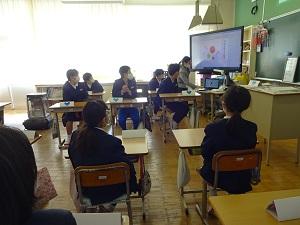 1~4年生は、国際交流員さんと交流しました。アメリカのお話や歌やゲームを紹介してくださり、楽しい活動ができました。