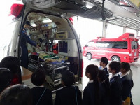 ポンプ車や作業車など消防車にはいろいろな種類があることが分かりました。救急車の中には、病気やけがの人の様子をみながら病院まで運ぶために、たくさんの機械や道具がありました。